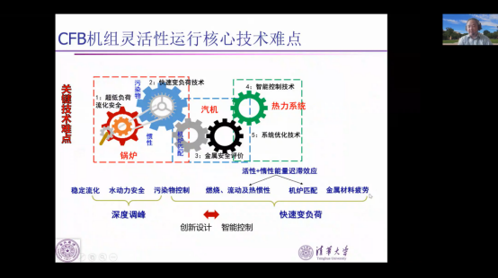 杨海瑞教授首先分析了双碳政策下我国煤电的定位,回顾了中国循环流化床技术的发展,梳理了双碳政策下中国循环流化床技术发展面临的挑战;然后从应对电网中可再生能源装机容量占比提高所带来的电网安全稳定运行和电能质量保障问题入手,介绍了燃煤发电机组灵活性运行基础问题及技术,主要从“十四五”对燃煤机组深度调峰及灵活性技术的要求、燃煤机组灵活性运行现状、循环流化床燃煤机组优势及挑战、循环流化床机组灵活性运行及对策等四个方面,阐述燃煤机组深度调峰灵活性运行的必要性、难点及潜在的技术路径。
