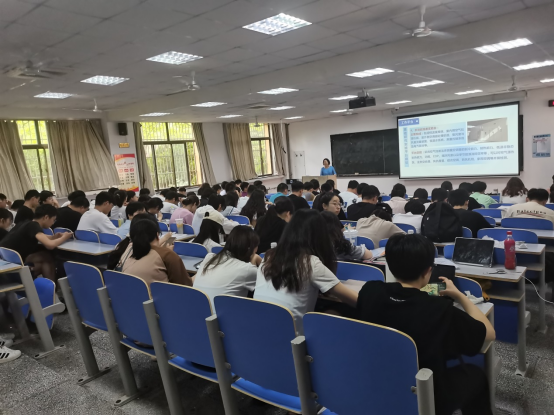 王翠苹教授重点介绍了市政污泥化学结构分析及模型的研究,进行了污泥化学结构在铁基载氧体表面化学链热解的分子动力学模拟,包括污泥化学结构的分析与构建、铁基载氧体表面的热解产物分析,分析了S、N等污染性元素的迁移路径,并介绍了自己的基础研究实验平台建设。最后,她向与会师生分享了自己的学习经历,自己在学术科研方面的心得体会并与大家展开深入交流。