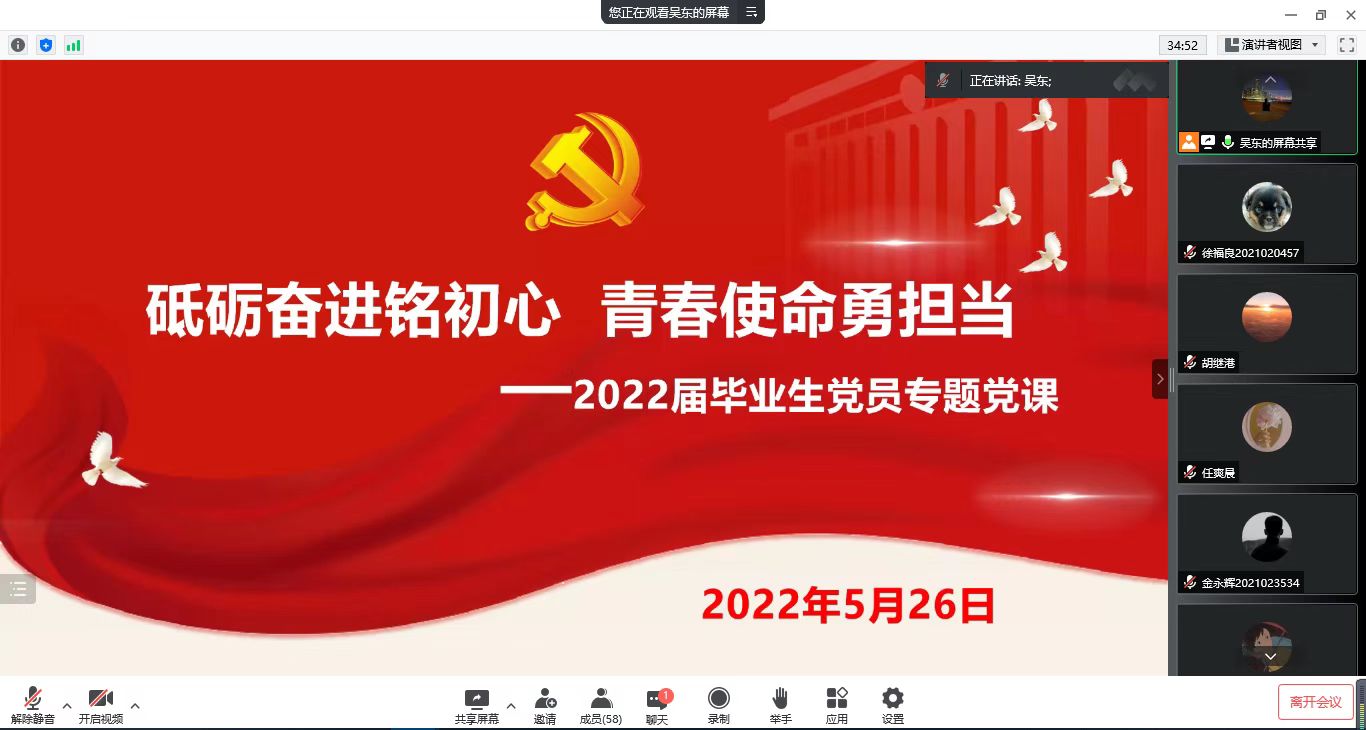 为加强毕业生党员教育,引导和鼓励广大毕业生党员坚定理想信念,发挥好党员先锋模范作用,5月26日中午,注册送体验金 在学院会议室举行“砥砺奋进铭初心,青春使命勇担当”2022届毕业生党员专题党课,全体毕业生党员通过线上线下相结合的方式参加了党课,党课由注册送体验金 党委委员、学生第一党支部书记孙万超主讲。