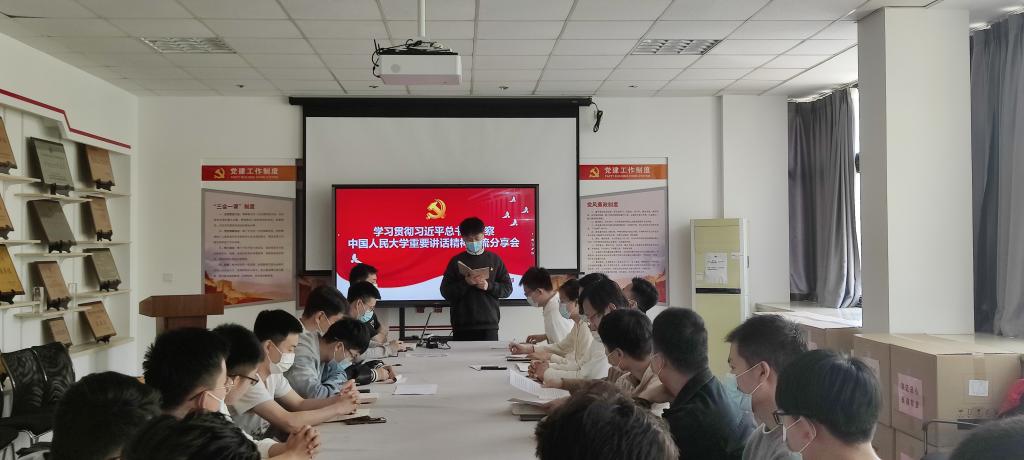 5月6日中午,我院学生第一党支部分别在学院会议室与诚思楼306教室召开学习贯彻习近平总书记在中国人民大学考察时的重要讲话精神交流分享会。会议由我院学生第一党支部书记孙万超主持。
