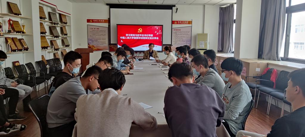 孙万超带领大家共同学习了习近平总书记在中国人民大学考察时的重要讲话,与会党员展开了热烈讨论。大家认为,习近平总书记的讲话饱含了对新时代青年的亲切关怀与殷切期望,大家对自己的的奋斗目标和前行方向有了更加清醒的认识,更加坚定了自己的科技报国理想。大家表示,作为工科专业学生,要牢记习近平总书记嘱托,坚定理想信念,努力锤炼本领,勇挑时代重担,坚定不移听党话、跟党走,让红色信念成为青春远航的动力,立足时代,扎根人民,不畏困难、奋楫争先,将个人小我的追求切实融入到国家和社会发展的大局中,让青春在为祖国、为人民、为民族、为人类的奉献中焕发出更加绚丽的光彩,用实际行动践行“请党放心,强国有我”的铮铮誓言。