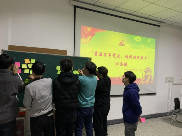 随后,大家结合自己的人生经历感悟,结合党领导人民抗击新冠疫情、脱贫攻坚的伟大事迹,忆党史,感党恩,铭初心,诉说时代心声,对党表白心声,100张便利贴,100句心声、祝福与承诺,献上对建党百年的祝福,表达的是对组织的期盼,更是向组织作出的庄严承诺。