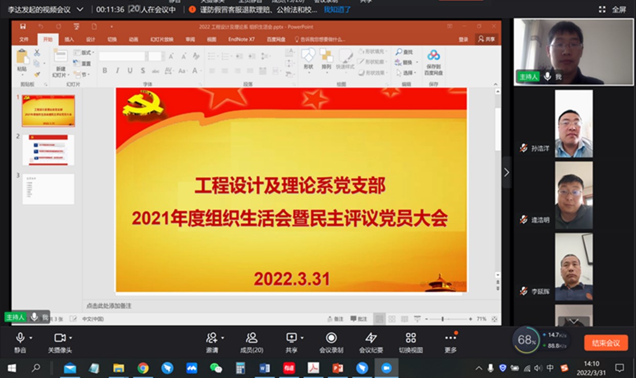 3月31日,注册送体验金 工程设计及理论系党支部在钉钉会议平台召开2021年度组织生活会暨民主评议党员大会,会议由工程设计及理论系党支部书记李达主持,学院副院长张洪信进行线上指导。