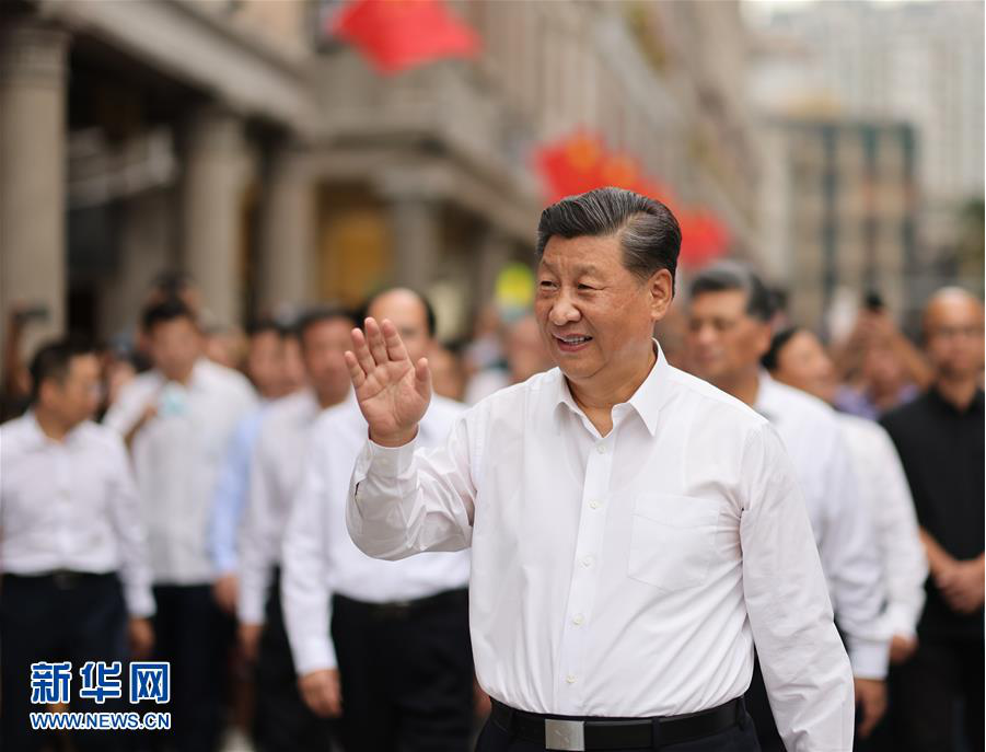 10月12日至13日,中共中央总书记、国家主席、中央军委主席习近平在广东考察。这是12日下午,习近平在潮州古城牌坊街考察时,向群众挥手致意。 新华社记者 王晔 摄