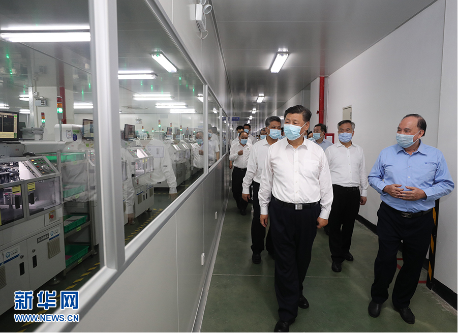 离开牌坊街,习近平来到潮州三环(集团)股份有限公司调研。50年来,这家企业坚持自主创新,不断推动产业升级,在电子元件、先进材料研发和生产上走在行业前列,一些产品产销量位居全球前列。疫情期间,企业在坚持严格疫情防控的同时,积极复工复产,产销量实现了逆势上扬。在公司展厅,习近平察看特色产品展示,详细询问产品应用、技术优势、市场销售等。他还走进实验室和生产车间,了解企业坚持自主创新、推动传统制造业转型升级以及开拓国内国际市场等情况。习近平强调,自主创新是增强企业核心竞争力、实现企业高质量发展的必由之路。希望你们聚焦国内短板产品,在自主研发上加倍努力,掌握更多核心技术、前沿技术,增强企业竞争和发展能力。面对世界百年未有之大变局,面对国内外发展环境发生的深刻复杂变化,我们要走一条更高水平的自力更生之路,实施更高水平的改革开放,加快构建以国内大循环为主体、国内国际双循环相互促进的新发展格局。大家要深刻领会党中央战略意图,在构建新发展格局这个主战场中选准自己的定位,发扬企业家精神,推动企业发展更上一层楼,为国家作出更大贡献。