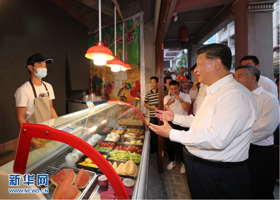 10月12日至13日,中共中央总书记、国家主席、中央军委主席习近平在广东考察。这是13日下午,习近平在汕头市小公园开埠区,同商铺店员亲切交流,了解复商复市和常态化疫情防控情况。 新华社记者 鞠鹏 摄