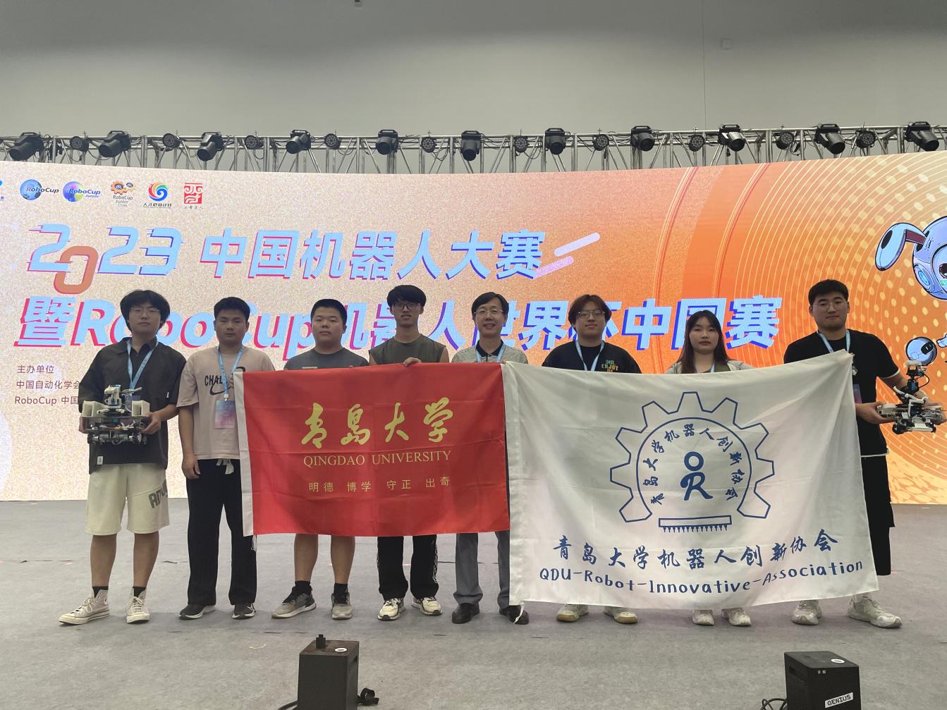 本次大赛由中国自动化学会、RoboCup中国委员会、晋江市政府、泉州市科学技术局主办,中国自动化学会机器人竞赛与培训部、中国自动化学会机器人竞赛工作委员会、中共晋江市委人才办、晋江市科学技术局共同承办,于10月13日至15日在福建晋江举办,吸引了来自包括清华大学、同济大学、浙江大学、厦门大学、北京航空航天大学、北京理工大学、国防科技大学、青岛大学等全国知名高校在内260所学校的1084支队伍和49所中小学的89支队伍参与角逐。在工程竞技机器人——车型机器人智能搬运项目中,由学生陈宇、吴朔、杨民东、周嘉仪、姬广通、王岩组成的“青大梦一队”荣获一等奖,由王林喆、侯晋普、张玉馨等组成的“825队”荣获三等奖;在自动分拣机器人——立体仓库项目中,由李超、陈翼飞、汪佳钰、刘国兴等组成的“青大快运队”荣获三等奖。