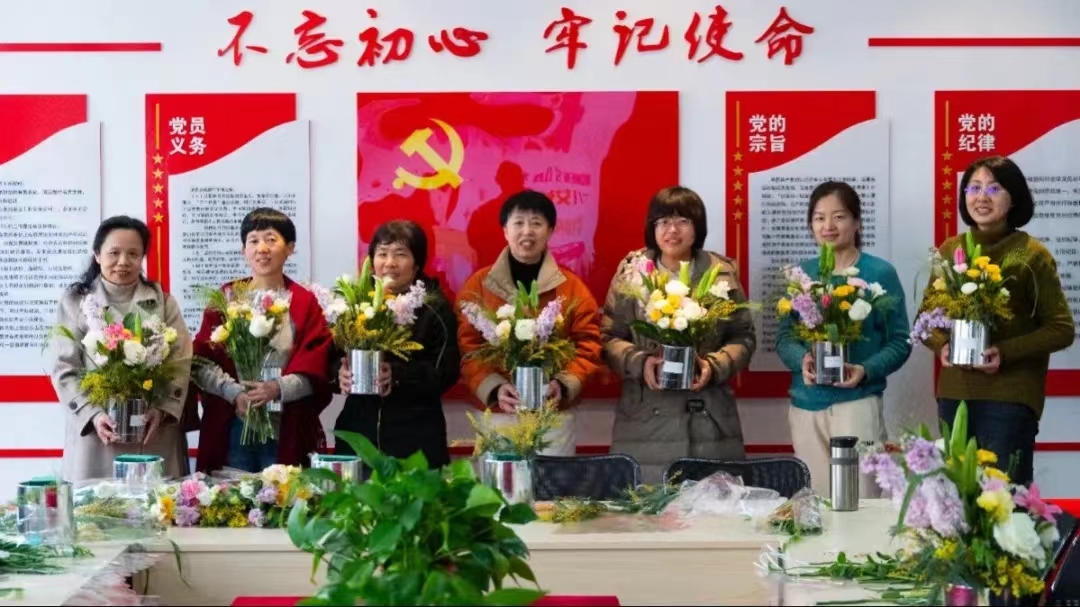 活动现场,花香四溢,热闹非凡。花艺师为大家讲解了插花的基本知识和技巧,并进行了现场示范。一支支鲜花,经过女同胞们的巧手修剪,巧妙组合,在指尖绽放别样芬芳。一件件充满创意的插花作品,弥漫着花香,笑语满堂。
