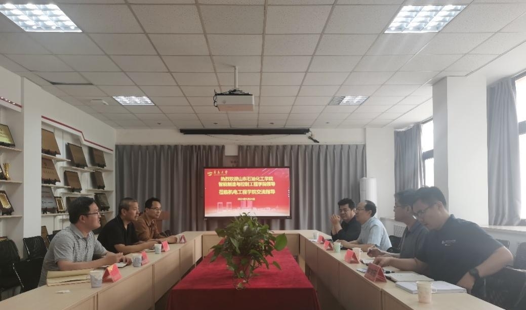 李延辉首先对杨树林一行来院表示热烈欢迎,介绍了学院的师资队伍、专业设置、人才培养、科学研究和教学科研平台建设等情况,表示希望两院在平台建设、社会服务等方面加强交流与合作。杨树林介绍了山东石油化工学院智能制造与控制工程学院基本情况,并对学院机械专业硕士点建设、省级实验教学示范中心和省级工程研究中心的规划与建设情况进行说明。双方希望在师资建设、人才培养、学科建设、科研平台建设等方面加强互联与合作,共同助力双方事业取得更大发展。