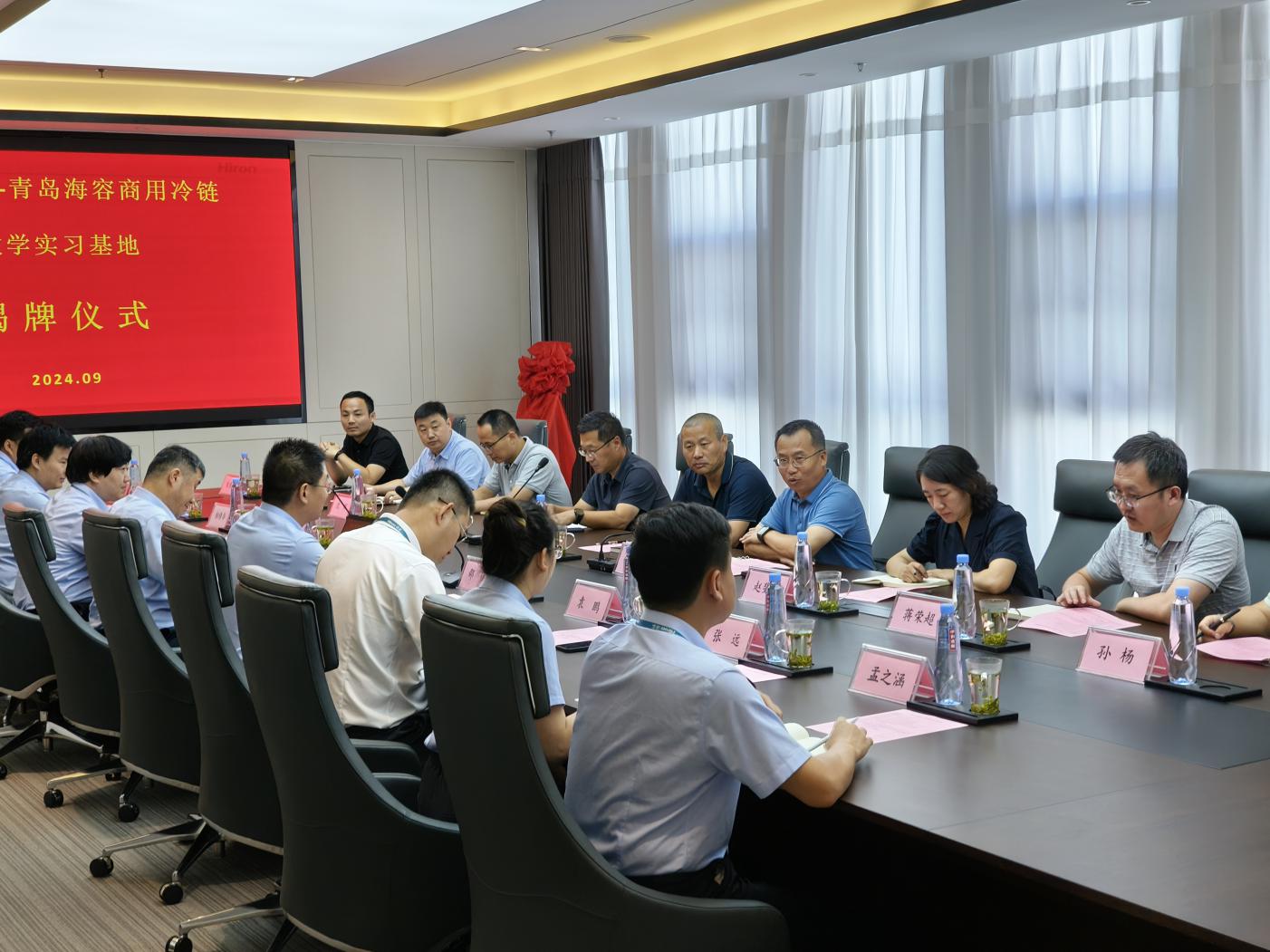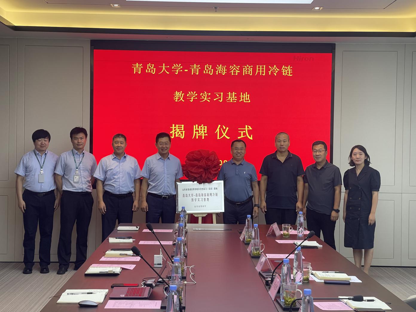 马洪奎副总经理简要介绍了公司情况、行业现状以及未来发展方向,李延辉院长介绍了学院师资队伍、学科专业以及产学研合作等情况。在李明伦书记与邵伟董事长等人的共同见证下,李延辉院长与马洪奎副总经理共同为省级示范性实习(实训)基地——青岛大学-青岛海容商用冷链教学实习基地揭牌,标志着青岛大学与青岛海容商用冷链合作共建的省级示范性实习(实训)基地正式落成。