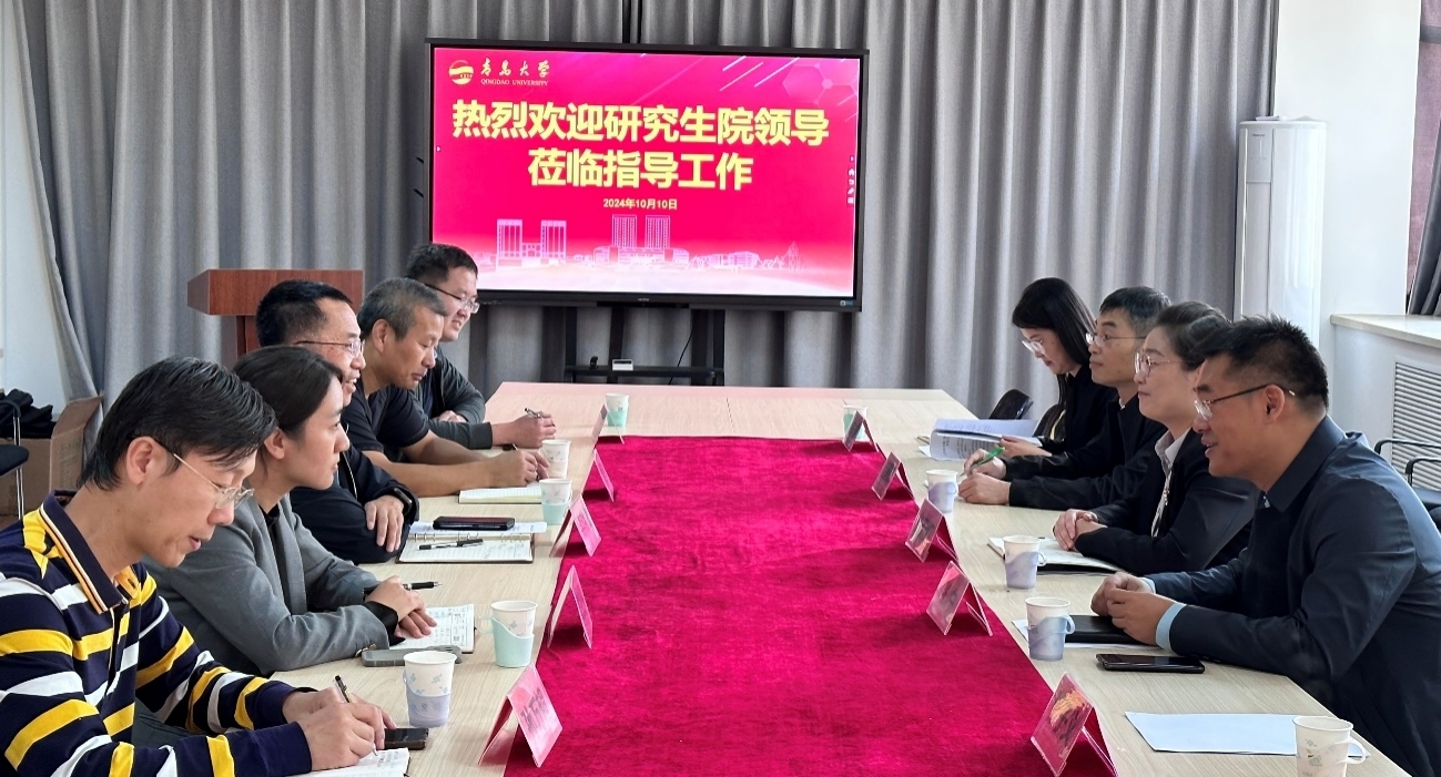 10月10日下午,青岛大学研究生院院长许元红、副院长张宁、副院长崔善锋、学位办主任张子义、培养办主任陶晓赟等一行来院调研研究生培养工作,学院党委书记李明伦、院长李延辉等参加座谈交流。